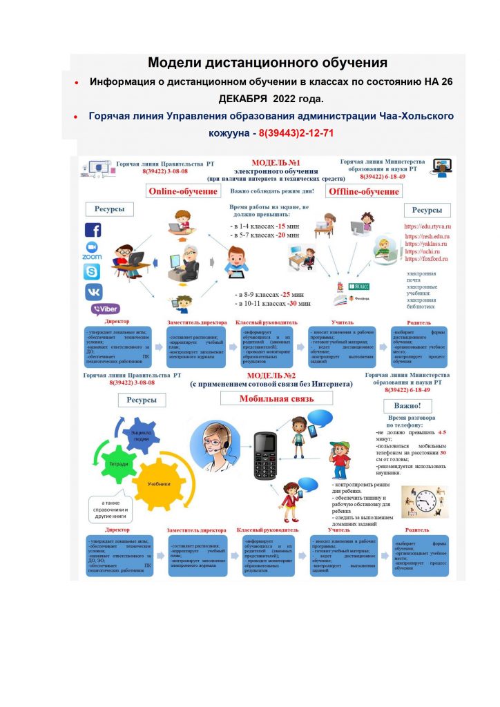 Дистанционное обучение Указ Главы РТ №30 от17.01.2022 о дополнительных мерах по обеспечению санитарно-эпидемиологического благополучия населения в Республике Тыва в свзяи распространением новой коронавирусной инфекции (COVID-19) Указ Главы РТ №31 от17.01.2022 о внесении изменении в Указ Главы Республики Тыва от 17 января 2022 г. № 30 Письмо Министерства Просвещения №1д-39-04 от 19.03.2020Скачать Приказ Министерства Образования РТ №42-д от 25.01.2022 об организации образовательной деятельности в организациях, в условиях распространения новой коронавирусной инфекции (2019-nCoV) Распоряжение Администрации Чаа-Хольского кожууна №19 от 24.01.2022 о переходе на дистанционный вид обучения в связи с эпидемическим подъемом заболеваемости Приказ Управления Образования №36 от 24.01.2022 о переходе на дистанционный вид обучения Приказ Управления Образования №37 от 24.01.2022 об организации образовательной деятельности в организациях, в условиях распространения новой коронавирусной инфекции (2019-nCoV) Рекомендации организация дистанционного обученияСкачать Уточнение методические рекомендацииСкачать Метод рекомендации к видеороликуСкачать