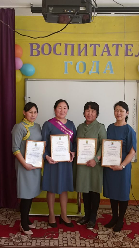«Моя педагогическая находка», «Педагогическое мероприятие с детьми», «Мастерская педагога», «Собеседование с членами жюри» и «Педагогические дебаты». По итогам конкурсных мероприятий победителем стала Норбу Лориса Николаевна воспитатель МБДОУ детского сада «Чодураа» с.Чаа-Холь, второе место заняла Кандан Анна Николаевна, воспитатель МБДОУ детского сада «Чодураа» с.Чаа-Холь. Сагаандай Сайзана Сергеевна – воспитатель детского сада «Солнышко» с. Чаа-Холь награждена дипломом в номинации «На пути к успеху» за лучший мастер класс, также Чечекпаа Чодураа Эрес-ооловна, воспитатель МБДОУ детского сада «Сайзанак» с.Булун-Терек в номинации «Доброта и забота» за лучшее педагогическое мероприятие с детьми.