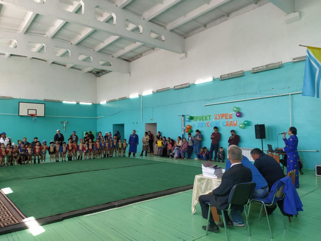 возраста, пропаганды здорового образа жизни, выявления сильнейших юных борцов на базе спортивного зала детской спортивной школы им.С.М. Сарбакая с.Чаа-Холь проведено кожуунное соревнование по национальной борьбе «Хуреш »